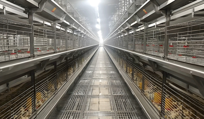 9CLXD-8192(4+4)型八层小叠式行车/链式喂料蛋鸡养殖设备
